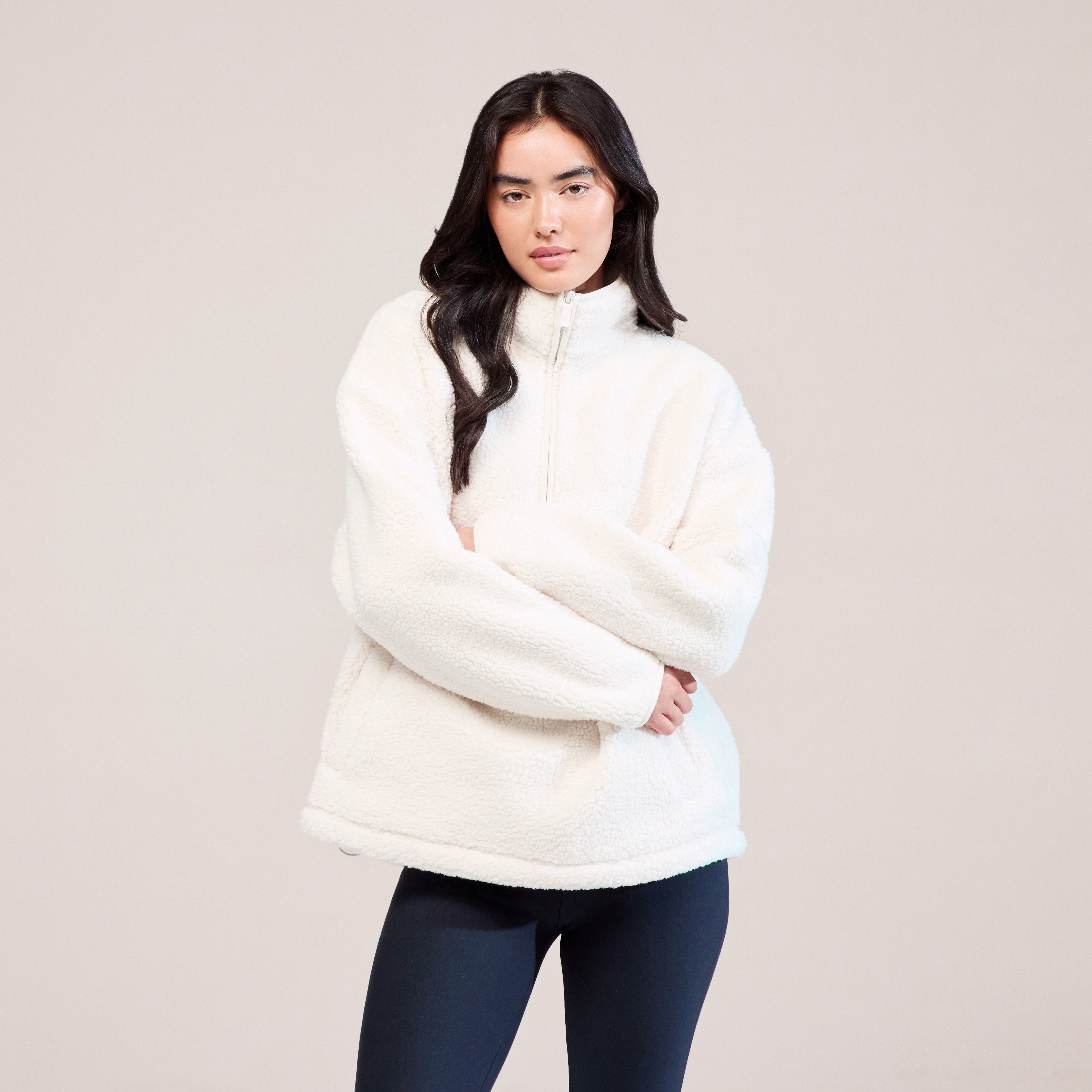 Uncompromising cosiness comes with the Borg Quarter-Zip. Elevating style for any look and giving that final layer of warmth. Crafted with a super soft, fleece-lined Borg fabric in a relaxed fit, this quarter-zip can slip on over any outfit for added comfort. Finished with elevated design features, including a high, turtle-style neckline, subtle front pockets, and branded zip details.