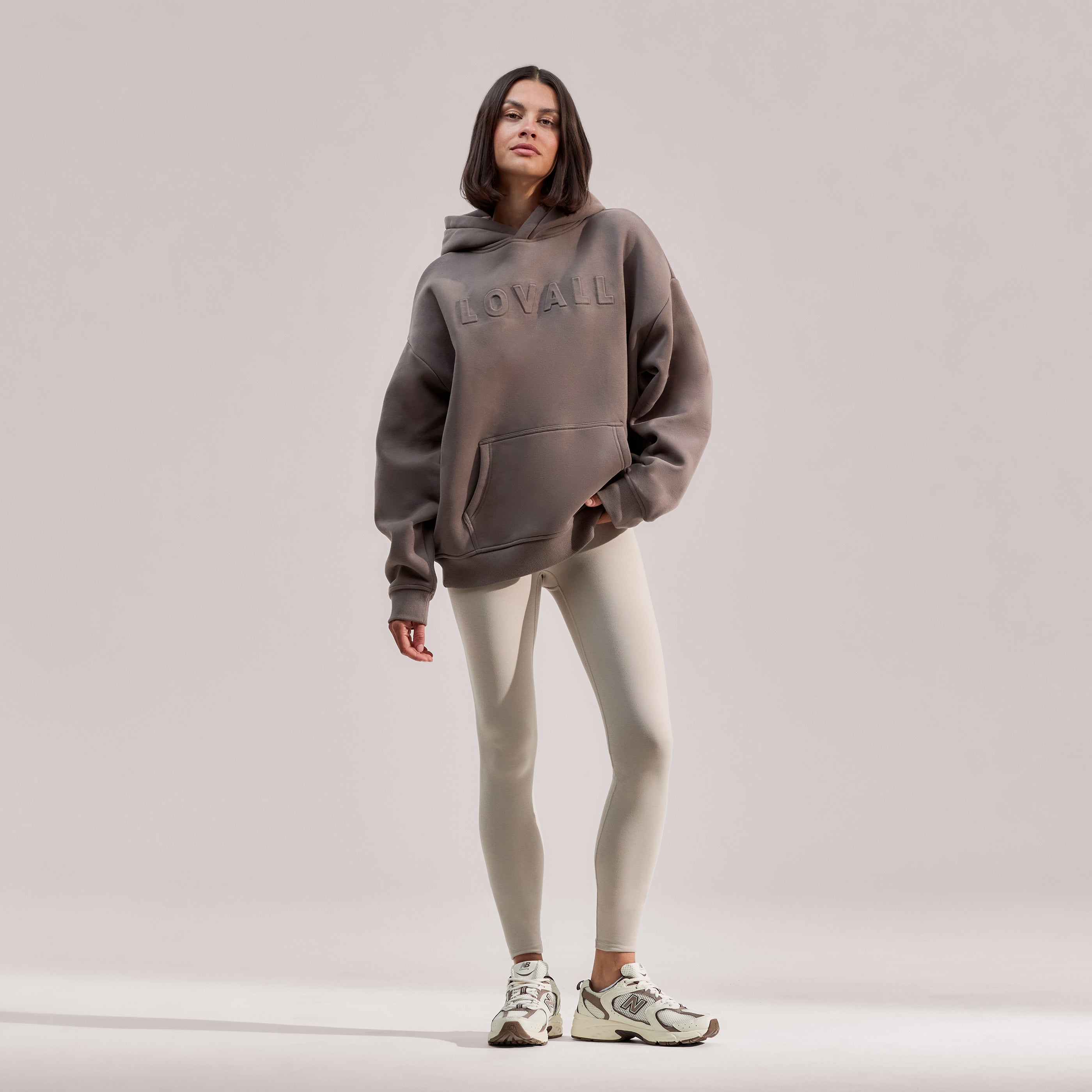 Designed in a flattering oversized fit with a drop shoulder shape. Accompanied by finishing details for style and comfort, including a 3D embossed Lovall logo, kangaroo pocket and ribbed cuffs and hems.