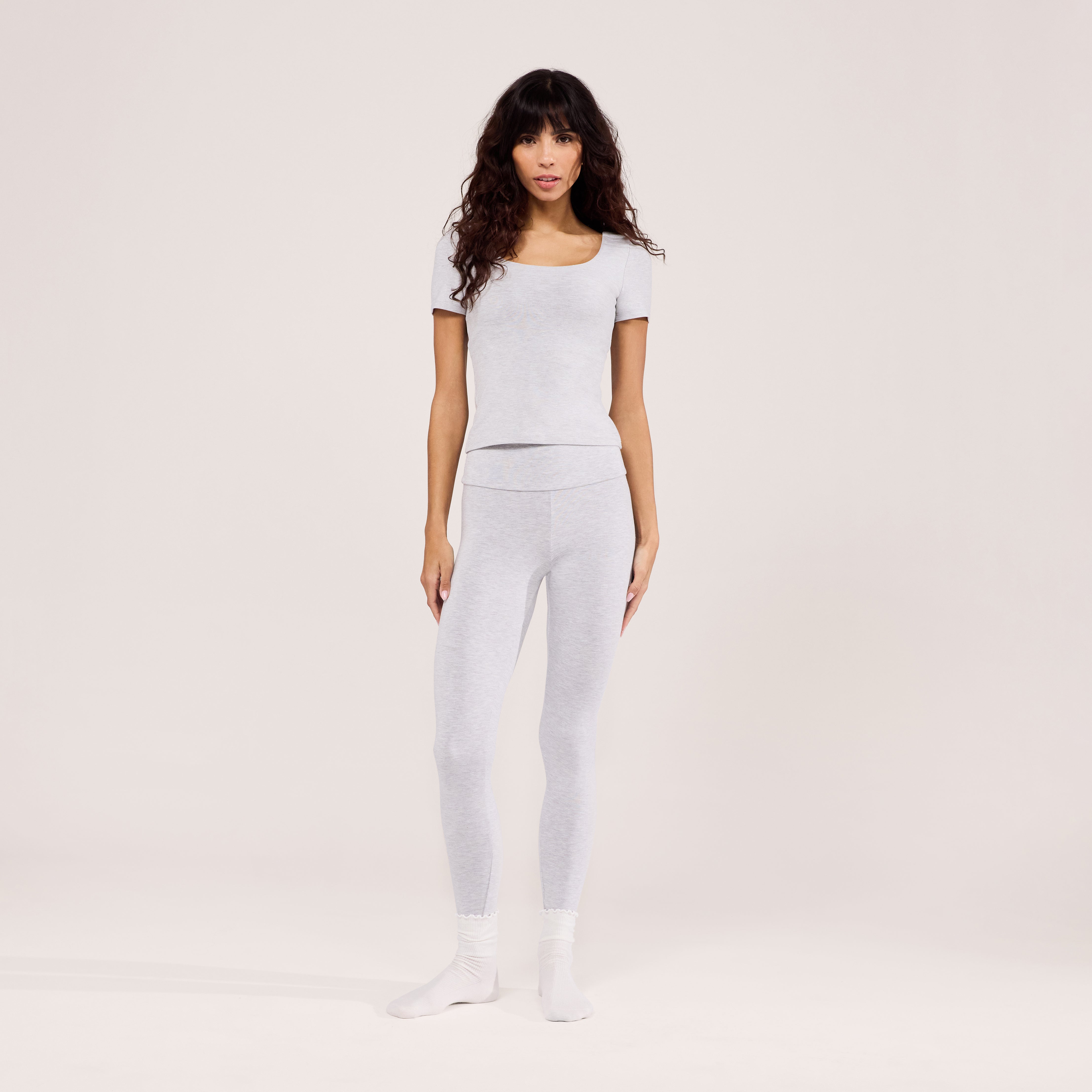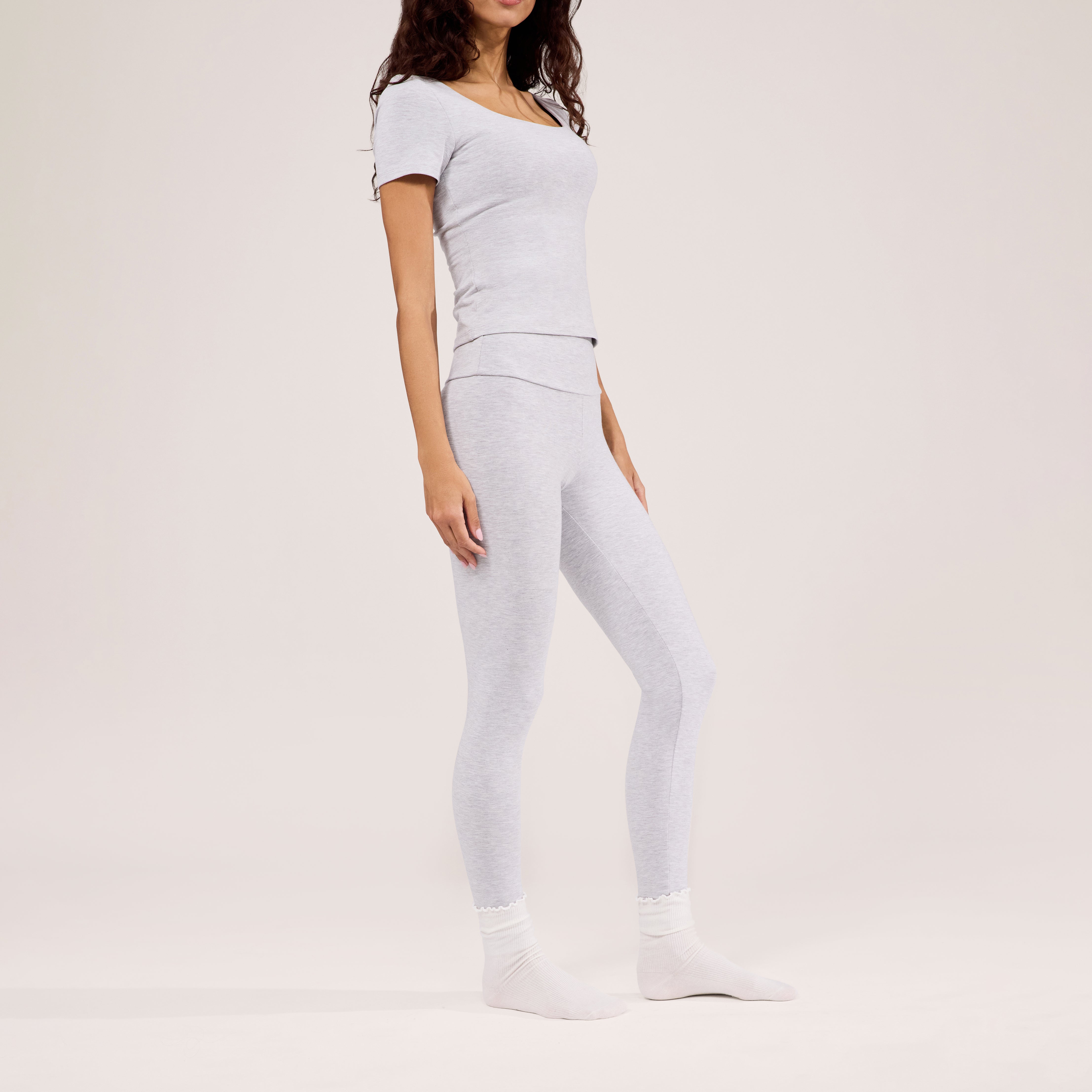 Lightweight Everyday High Waisted Leggings | Light Grey Marl