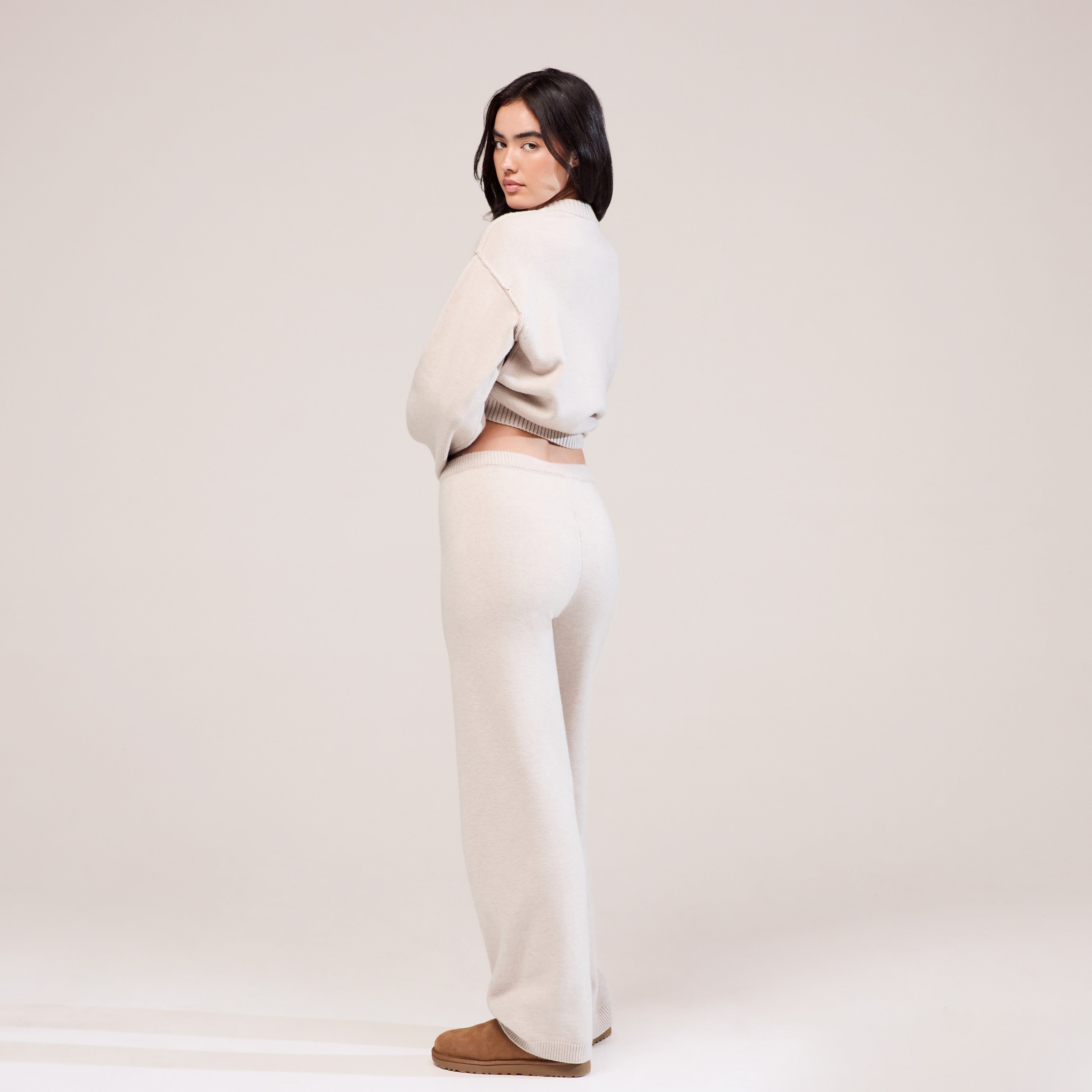 Soft Knit Wide Leg Trousers | Beige